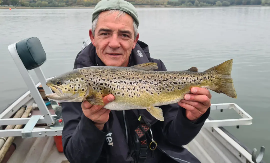Pitsford Water or Pitsford Reservoir is a 413 hectare reservoir and biological Site of Special Scientific Interest east of Brixworth in Northamptonshire. It is owned by Anglian Water, which manages it as a water park for walking, cycling, fishing, sailing and birdwatching. An area of 181 hectares north of the causeway which divides the reservoir is the Pitsford Water Nature Reserve, which is managed by the Wildlife Trust for Bedfordshire, Cambridgeshire and Northamptonshire. The reservoir was built in 1956 to supply the town of Northampton, which is about 9.7 kilometres (6 mi) to the south. Holcot bridge was submerged when it filled and was replaced by a causeway 400 metres (0.25 mi) further south. The water is the 34th largest in England and Wales, with a surface area of 7.4 square kilometres (2.85 sq mi). Among artificial lakes, however, it is the fourth-largest in the United Kingdom. The reservoir is near the village of Pitsford, from which it is named. It is also close to Brixworth village and Brixworth Country Park, with Holcot on its eastern side. This is the largest body of water in the county, and is used by wintering wildfowl, including the northern shoveler in nationally important numbers. Over 60 species of birds breed on the site, such as the great crested grebe, little grebe, teal, kingfisher and reed warbler. The water is run as a trout fishery by Anglian Water, on a season ticket and day ticket basis, with boat hire available. Predator fishing is available in the winter months, mainly for pike. Trout are stocked at around 0.91 kg (2 lb) in weight. The Pitsford Water brown trout record was set in October 2017 by season ticket holder Bob Collins with a fish of 7 kg (15 lb).